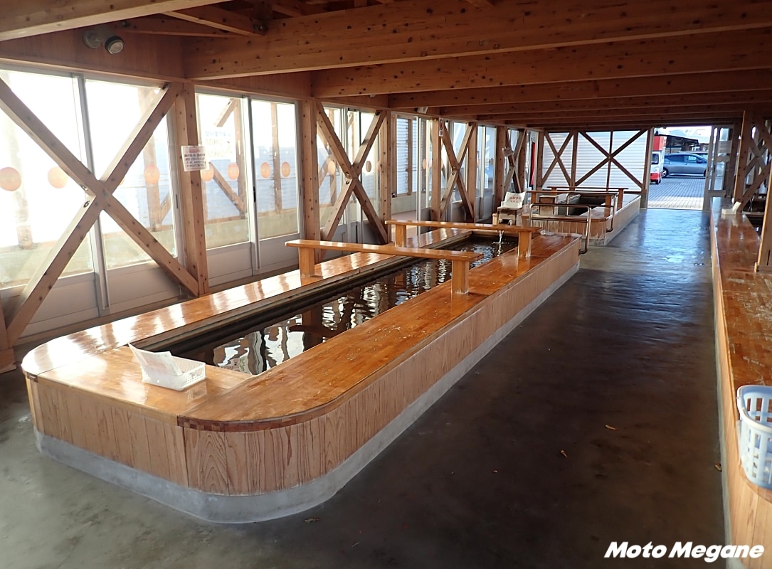 さらに屋外には源泉かけ流しの足湯があり、無料で利用可能だ。道の駅には物産館やレストランも併設され、地元の海鮮丼や秋田由利牛料理などを味わえる。展望温泉と食事、買い物を一度に楽しめる東北最大級の道の駅であり、ツーリングや観光の途中に立ち寄り、温泉で心身を癒やすのに最適なスポットである。