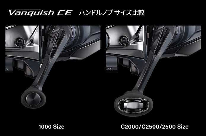 ノブは番手ごとに最適化され、1000サイズには繊細な釣り向けの小型I型ノブ、C2000〜2500には握りやすい薄型I型ノブを装備。