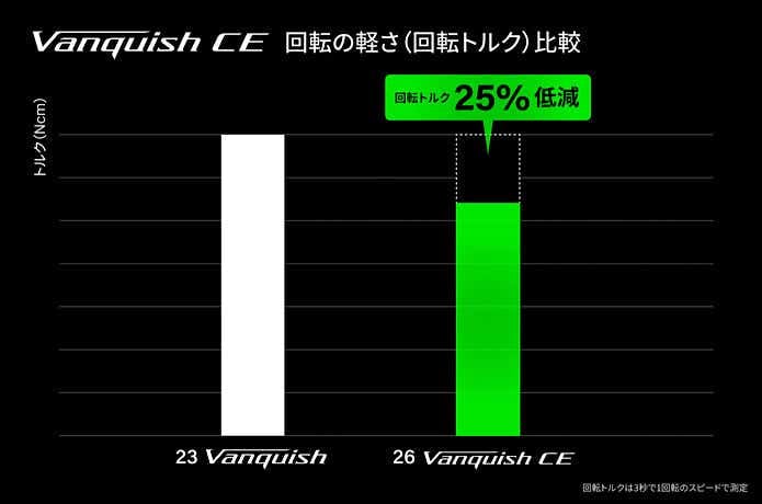 CEモデルは巻き感度を追求した設計でありながら、23ヴァンキッシュの中核技術をそのまま継承。