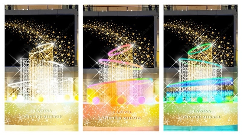 ラゾーナ川崎プラザでは、2025年12月1日(月)から2026年1月25日(日)までの期間、2階のルーファ広場で、光と音が幻想的なショーを紡ぐイルミネーション「LAZONA WINTER MIRAGE」を開催中です。