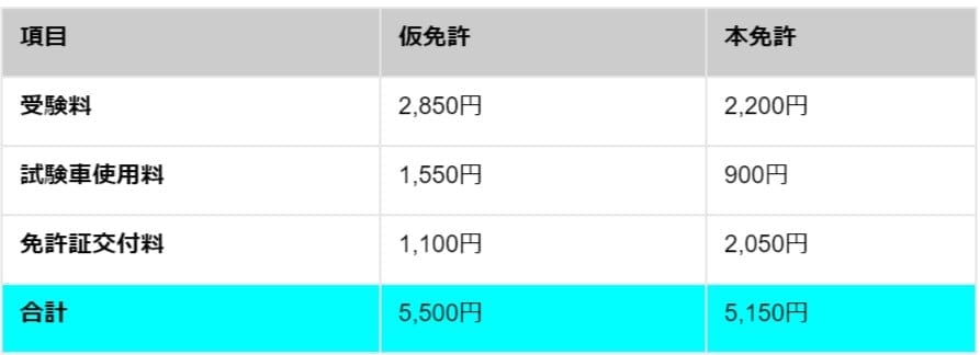 仮免許および本免許の2段階で受験料がかかる仕組みです。仮免許では1回あたり5,500円、本免許では5,150円を支払わなければなりません。