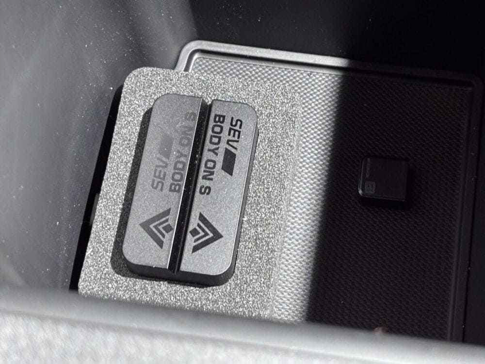 あと、オカルトパーツの類ですが、ホイールのバルブキャップをSEVに交換しています。どうやらタイヤまわりを整流してくれるパーツらしく、単体では効果を感じませんでしたが、SEVの「BODY ON S」と組み合わせることで乗り心地がかなり変わりました。こちらは、ボディのたわみを早く収縮させる働きがあるパーツだそうです」