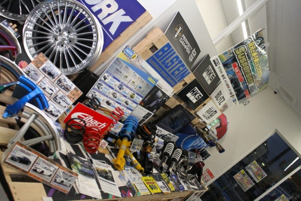 ローダウンからツライチカスタム、リフトアップまでトータルカスタムを得意としており、タイヤ1本の交換からホイールセット、車高調整、アライメントまでワンストップで対応しています。