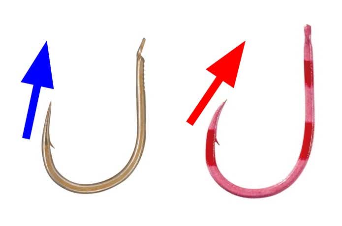 グレ針には大きく2種類の形状があり、上を向く「ストレートタイプ」と、内側に向く「ネムリタイプ」に分かれます。