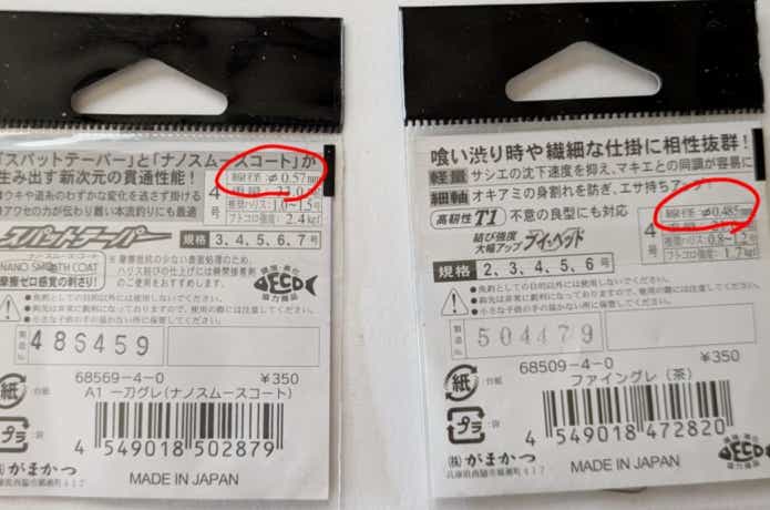 軸の太さはパッケージ裏で確認できます。