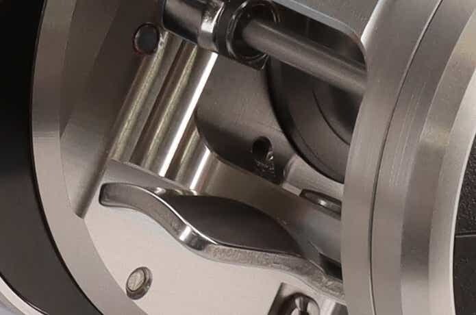 さらに素材をアルミからステンレスへ変更し、ソルト用丸型両軸リールと同等の強度を確保しています。