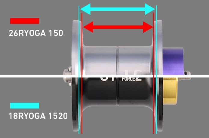 数多くのフィールドテストを重ねた結果、150番サイズではナロー形状の新スプールを採用。