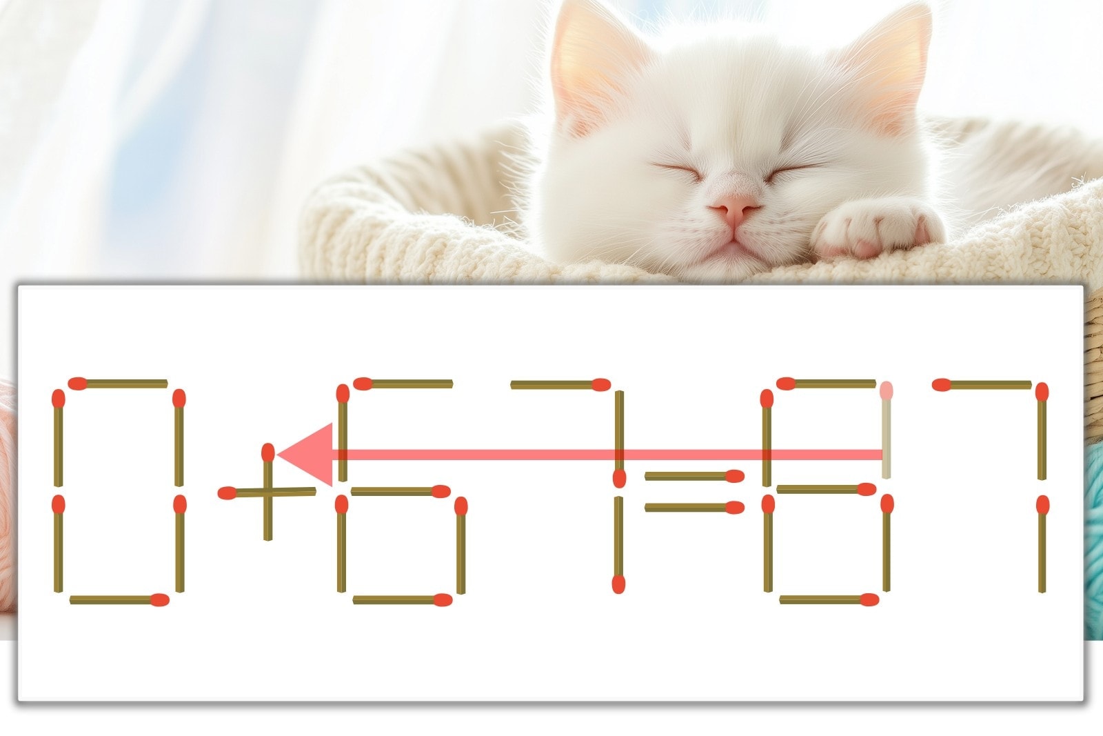 「8」を別の数字に変化させると答えが導き出せます。「8」のマッチ棒を1本移動して、「-」を「+」にしてみましょう。すると、「0+67=67」が成立します。