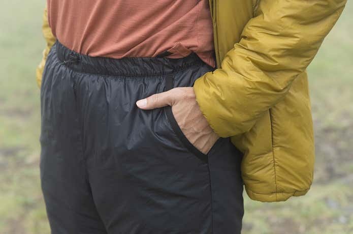 インサレーションパンツはインナー的と上記した通り、ポケットを装備していないモデルが多いです。でも、アウター的防寒着として使うなら、ハンドポケットはあった方が便利。