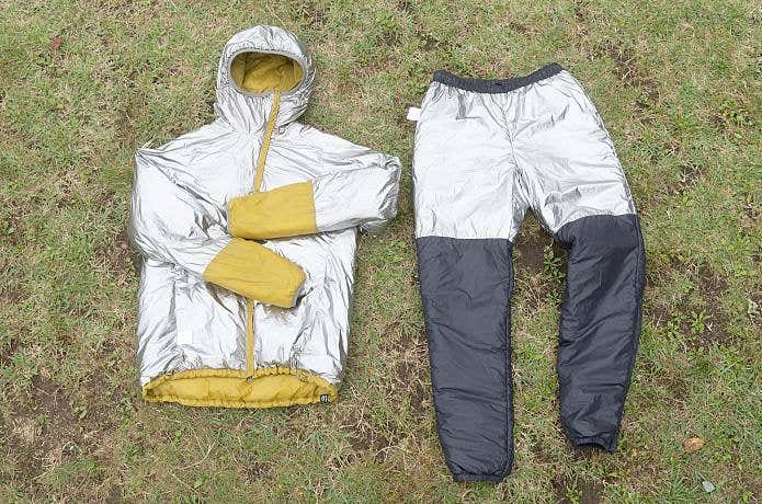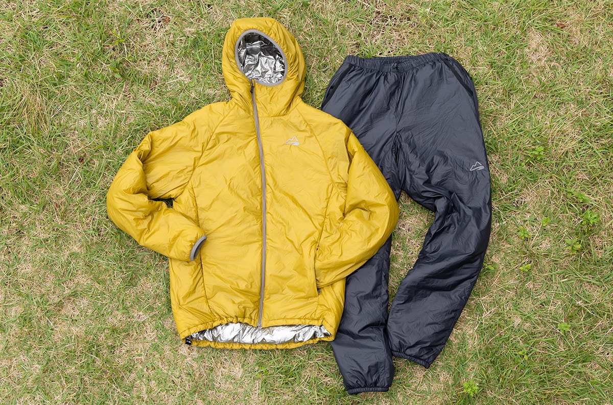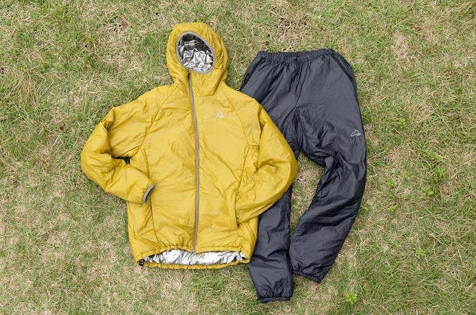 商品名が意味するニュアンスはなんとなくわかると思いますが、端的に特長を表現すると、『チタンの力で体の熱を反射させる、フード付きのインサレーションジャケット&パンツ』です。