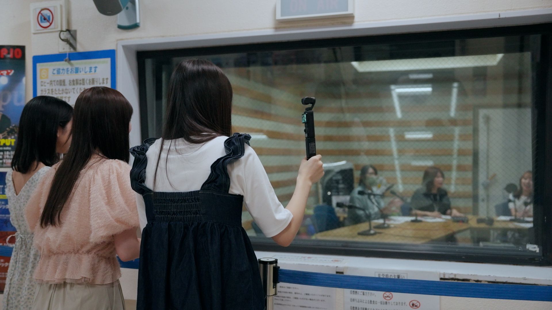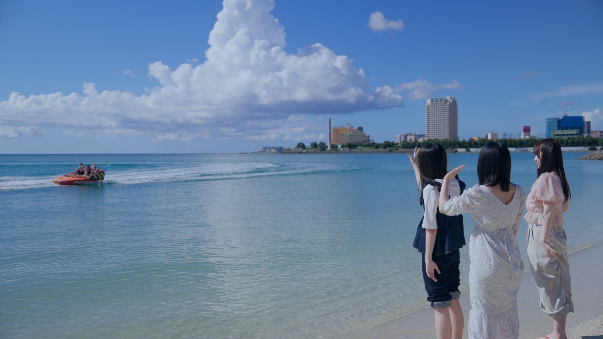 沖縄に上陸した乃木坂46・6期生の愛宕心響、海邉朱莉、増田三莉音。国際通りの市場本通で、海邉が撮影交渉を行うことに。丁寧に撮影の許可とポスターを貼らせてもらえるよう交渉する海邉。お店の人はこころよく交渉に応じてくれた。