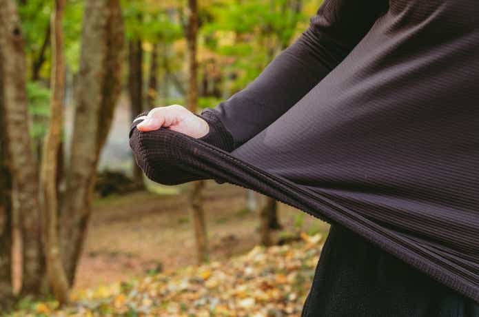 汗をかいても生地が肌にベタッと張り付きにくく、冷えと不快感を同時にセーブしてくれる設計。