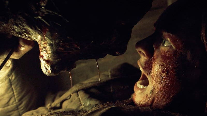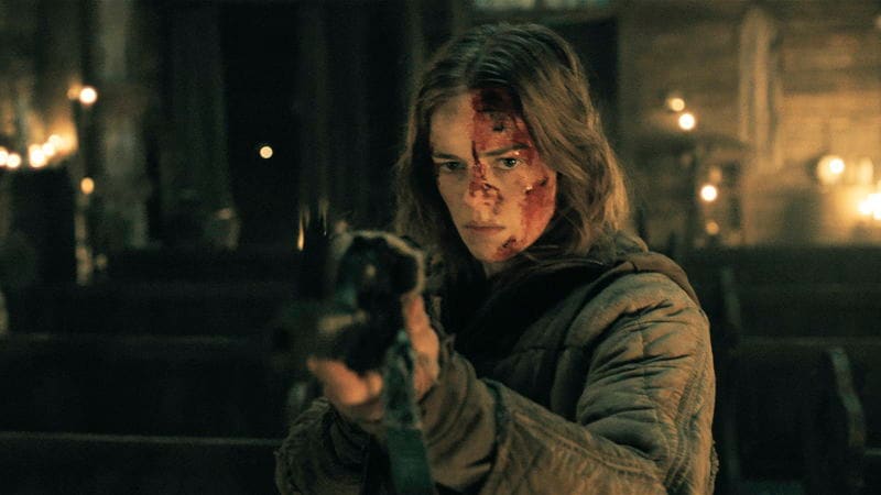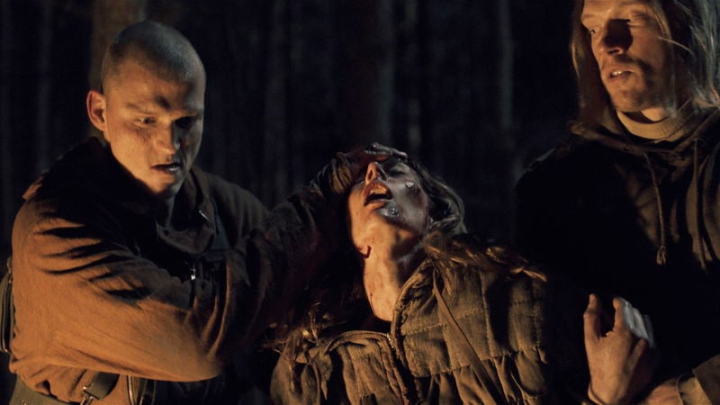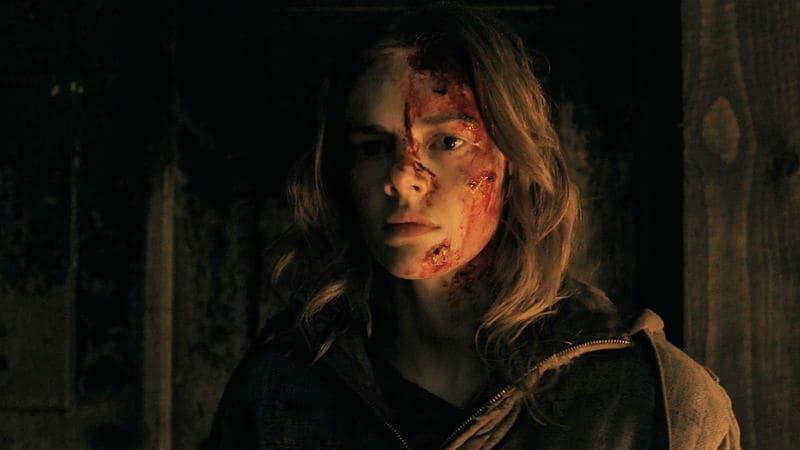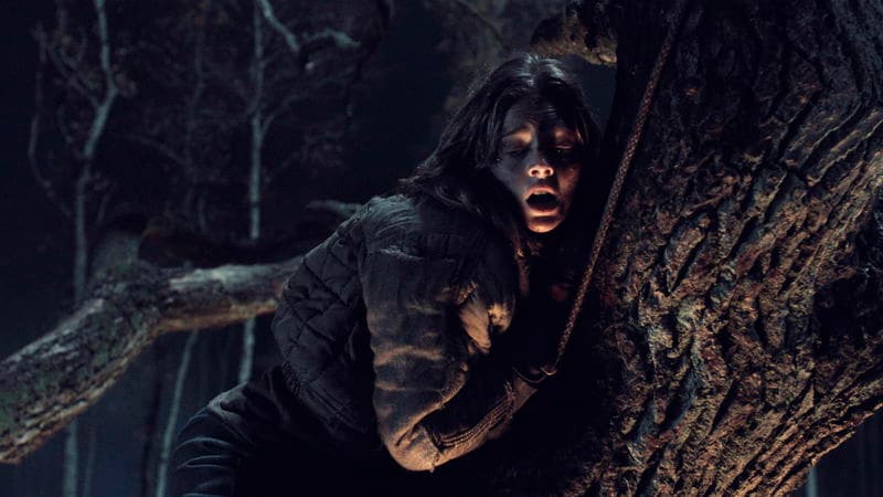 場面写真では、村人たちに儀式へと引きずり込まれていくアズラエル(サマラ・ウィーヴィング)の姿をはじめ、血にぬれながら銃を構える決死の表情や、木の根へとつなぎとめられた“処刑椅子”に拘束される場面が収められている。さらに、恋人と寄り添いわずかな安息を求めるひととき、そして巨大でまがまがしい“何か”と対峙し“声なき悲鳴”を上げる決定的瞬間まで、アズラエルが踏み入れてしまった鮮血のサバイバルの予兆が捉えられている。