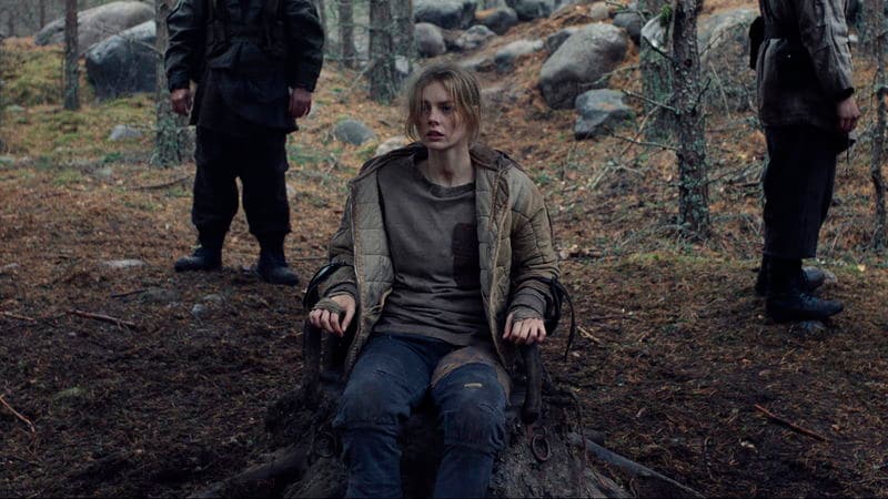 木の根へとつなぎとめられた“処刑椅子”に拘束される少女 「ヴィレッジ 声帯切村」場面写真