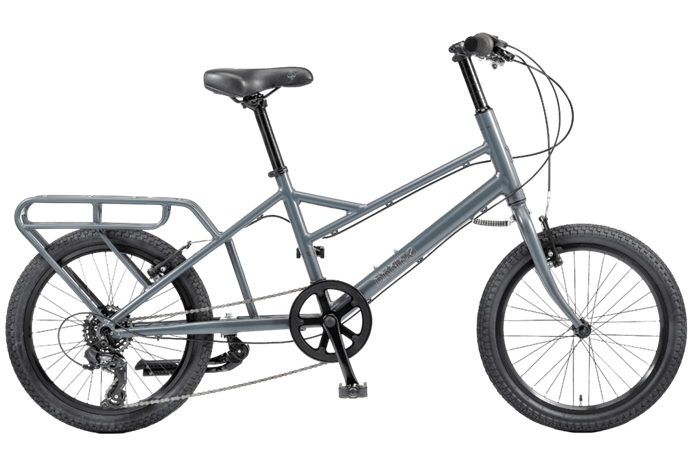 後ろキャリアが大きなミニベロ。デザインの個性はもちろん、大容量の荷物を積むこと、チャイルドシートを取り付けてお子さんを乗せることもできます。積載力があるので、買い物で荷物が増えてもスマートに走れますよ。