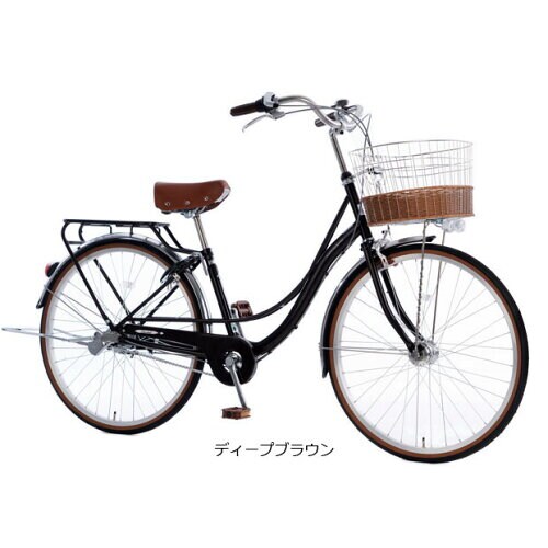 ヨーロピアンテイストの、流れるようなフレームが美しい1台。サドルだけでなく、サイドがブラウン調にカラーリングされたタイヤもクラシカルですね。女性にもおすすめの、上品な印象のシティサイクルです。