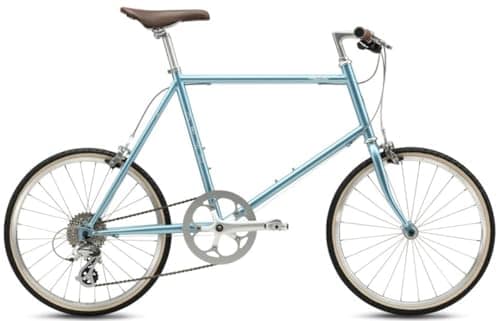 FUJIの定番ミニベロ。細身のパデッドクロモリフレームで、上品な佇まいです。シンプルでスマートなフォルムなので、いろんなコーディネートに馴染むでしょう。