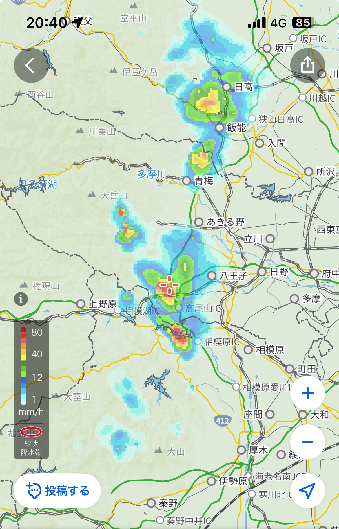 相模原のトンネルを出たところで雨雲が切れやっと星空が。いったい何だったんだろう、あのゲリラ豪雨は。こっちは路面、濡れてすらいないし…