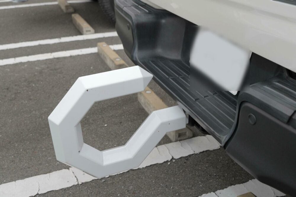 細かいラプターライナー塗装とオリジナルモンスターヒッチでオリジナリティを打ち出している。