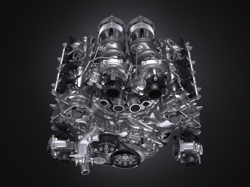 新開発の4L V8ツインターボエンジン+リヤトランスアクスル
