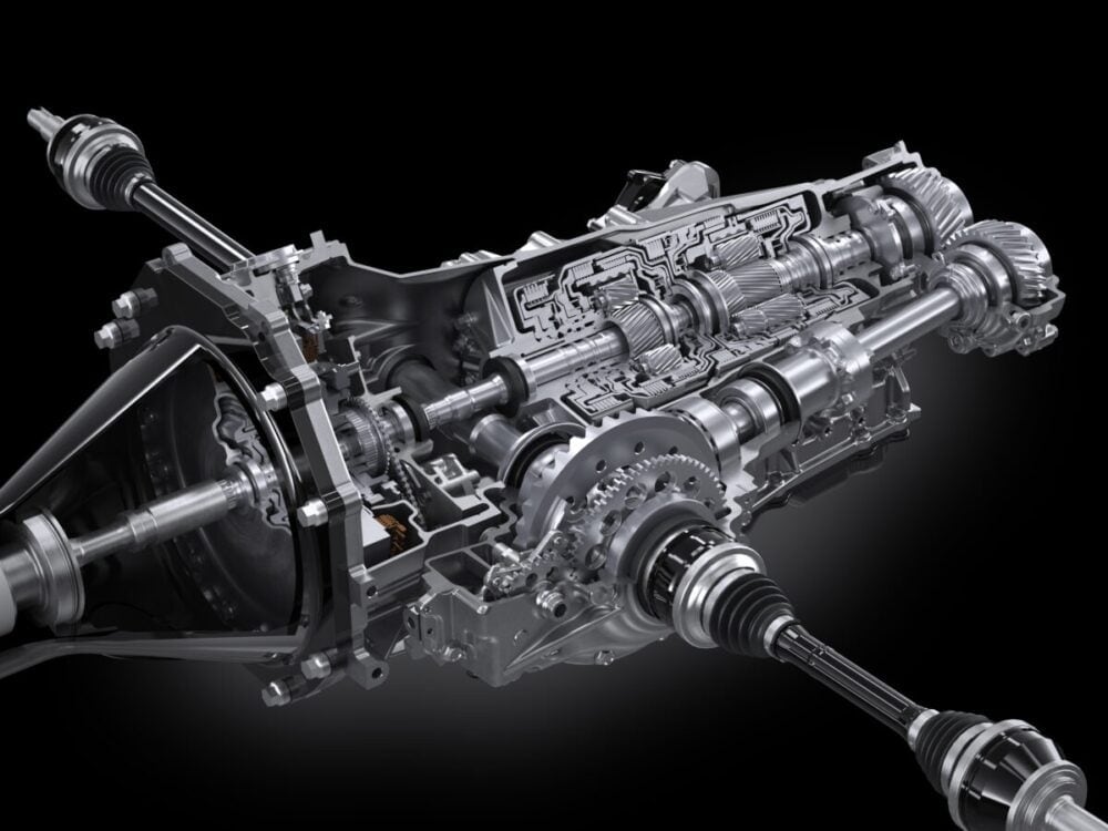 エンジンが生み出した動力は、炭素繊維強化プラスチック(CFRP)製のトルクチューブを介して、リヤのトランスアクスルへと伝達します。トランスアクスルはモータージェネレーターに加え、トルクコンバーターを廃した「WSC(ウェット・スタート・クラッチ)」を使った新開発の8速AT、機械式LSDを一体にし、動力をタイヤまでダイレクトに出力しています。