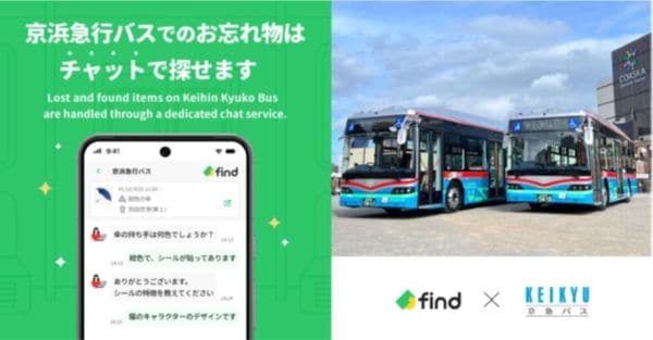 京浜急行バス(横浜市)が運行する路線バス・貸し切りバス・高速バス・特定バスと、羽田空港内京急バス乗車券売機付近で預かった落とし物についての問い合わせが、チャットでできるようになった。find(東京)が提供する「落とし物クラウドfind」を導入してスタートするサービス。利用者からの問い合わせにスムーズに対応するとともに、落とし物に関わるスタッフの業務負担軽減を図る。