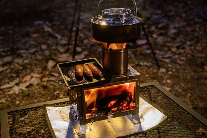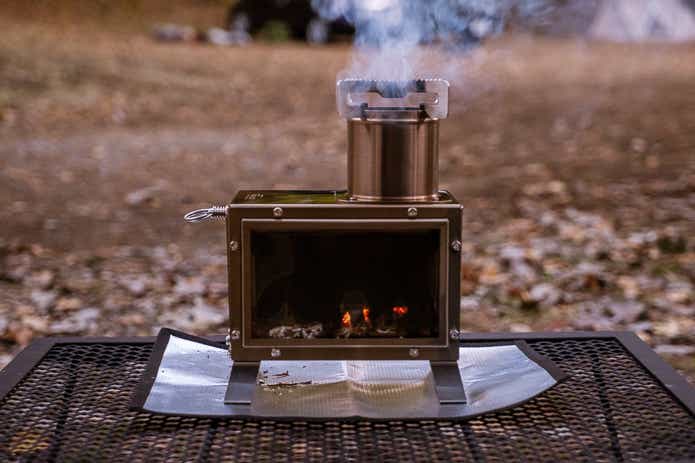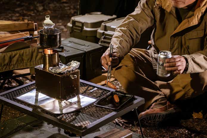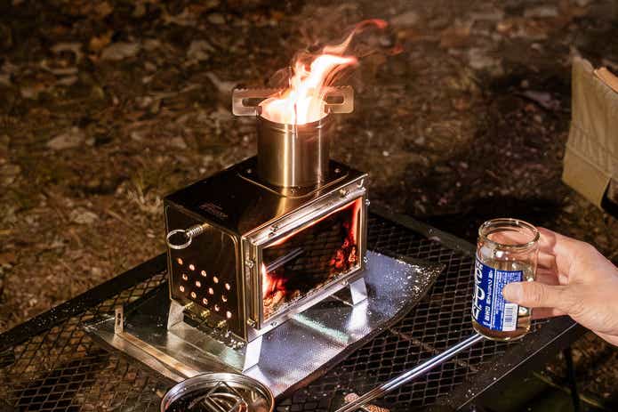 大人の嗜好品のようなポジションで使いたいフィールドアの「ミニ薪ストーブ」、キャンプ晩酌の相棒にいかがでしょうか?