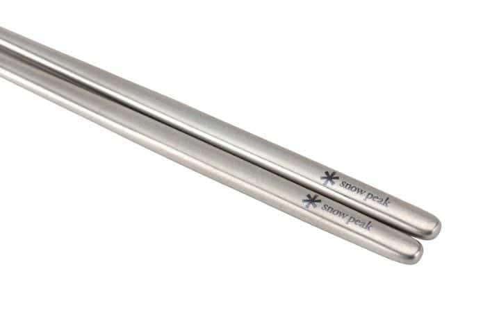 軽くて頑丈なチタン製で、使い勝手の良さと耐久性を兼ね揃えたスノーピークの箸。手持ち部分のロゴマークのみのシンプルで洗練されたデザインで飽きがきにくく長く愛用できます。