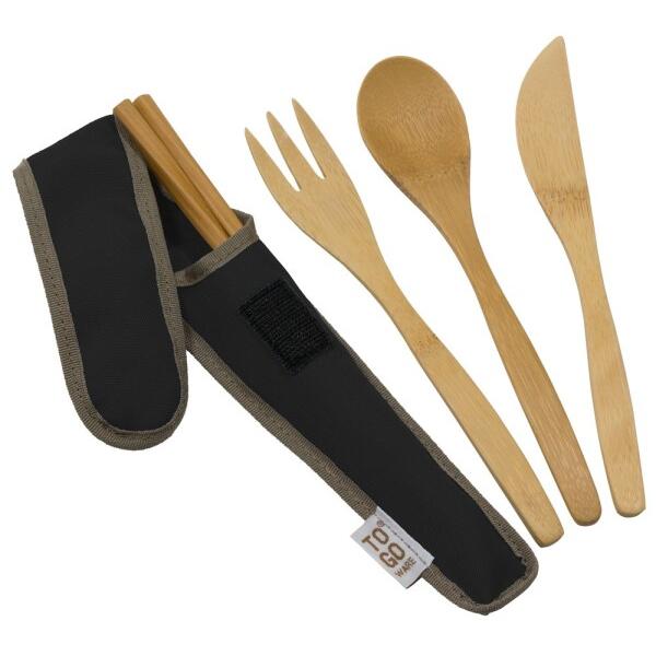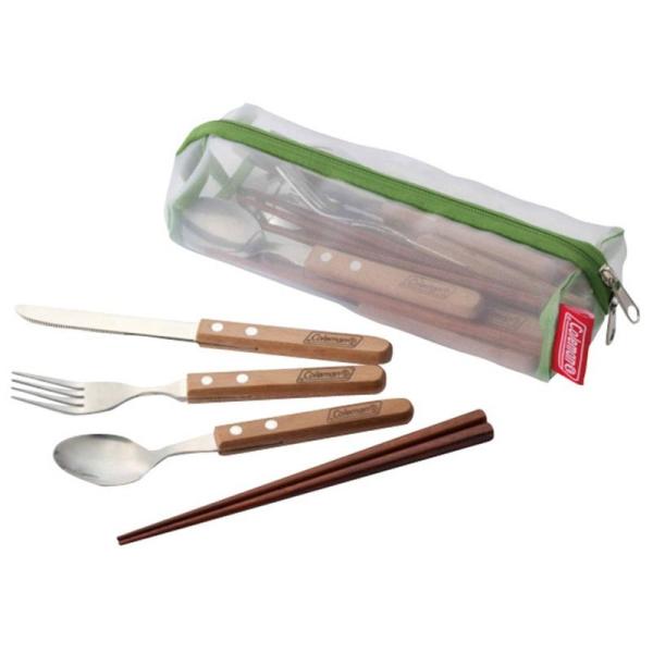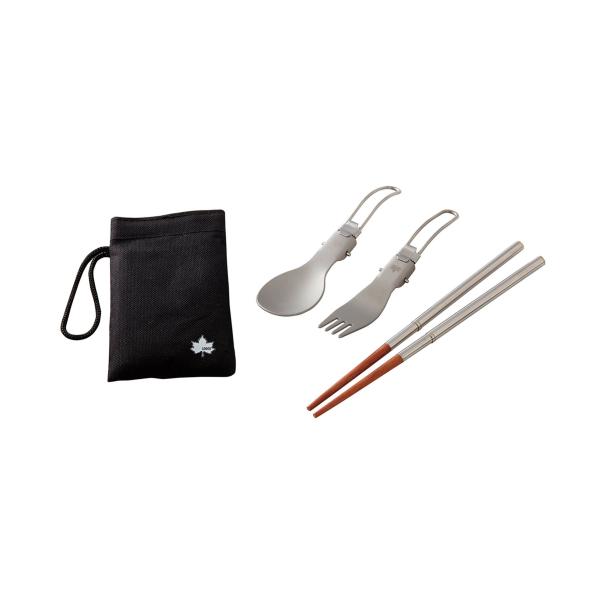 箸だけでなくスプーン、ナイフ、フォークが付属になった4点セットで、あらゆるメニューに対応できます。スクエア型なので、不安定なアウトドアシーンでも転がり落ちにくく、衛生的です。
