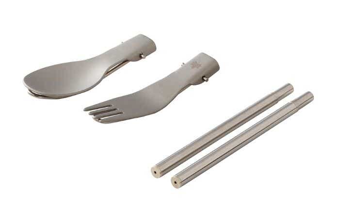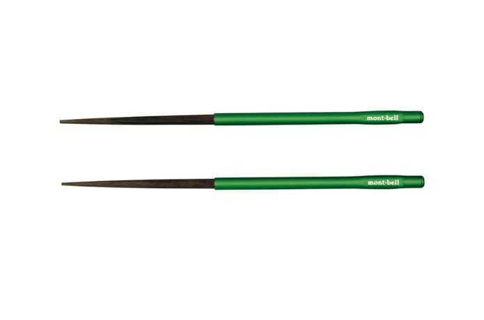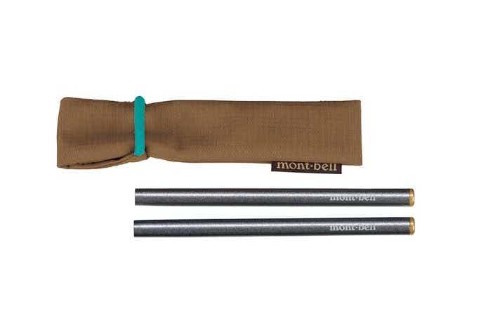 すぐに組み立てられてしっかり固定できるねじ込み式のモンベルの「スタックイン 野箸」。軽量で耐久性の高いアルミニウム合金に、口当たりの良さと丈夫さを兼ね揃えた天然木を組み合わせています。