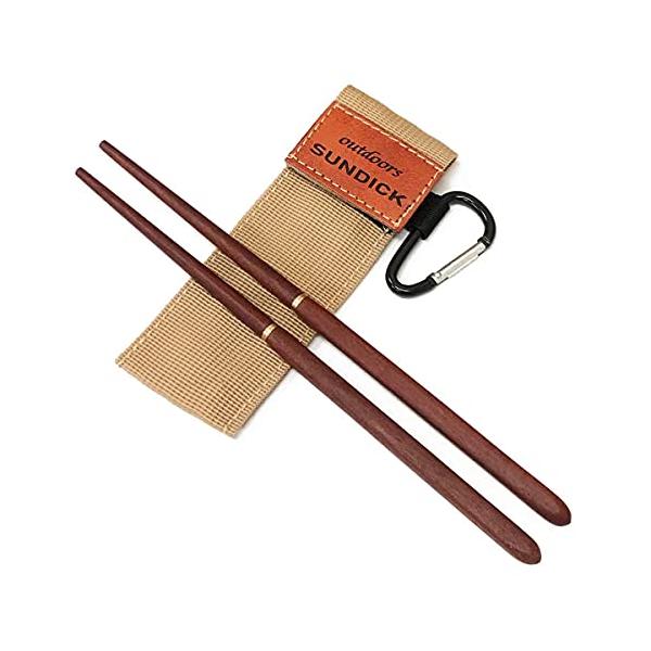 マホガニー製箸は温かみのある木目調で、アウトドアでもナチュラルな食卓を演出できます。