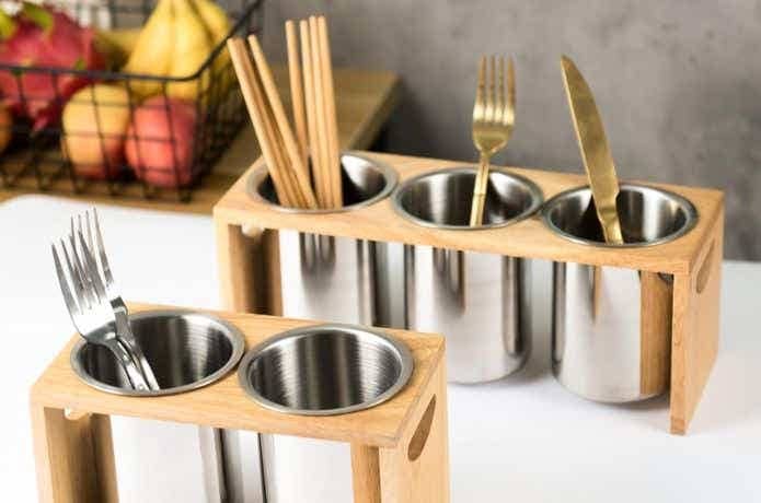 1人ずつ箸置きを用意するのは大変という場合は、箸立てを1つ用意すると便利です。箸だけでなく、スプーンやフォークなどもまとめることができます。