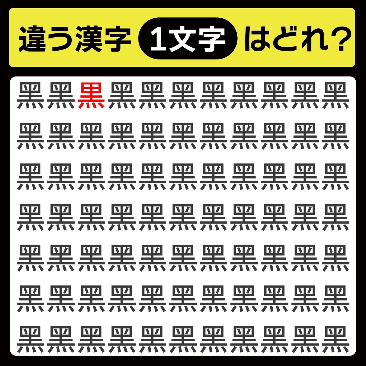 「黑の中に隠れてるのは?」漢字間違い探しで脳トレしよう!【毎日脳トレ】【クイズ】
