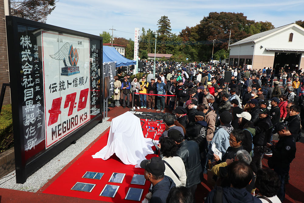 今回の目玉は、2022年より3カ年計画で進めていた那須烏山商工会 工業部会の14社から成る「メグロZ号レストア・プロジェクトチーム」で再生された「メグロZ」のお披露目でした。同モデルは1948年から1951年までのあいだに烏山工場で作られた部品によって製造された945台のうちの1台で、プロジェクトチームには烏山工場の元従業員が創業した会社も含まれていました。