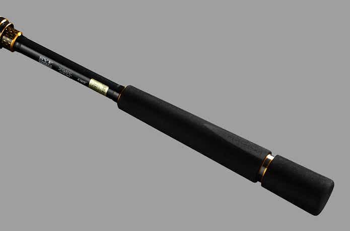 両サイドにフラット面を設け、ロッドを縦に振り抜きやすくするCCグリップを採用。