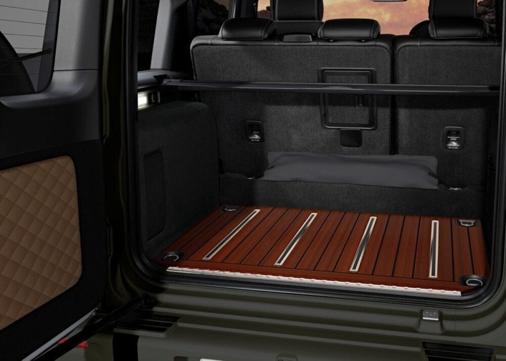 - G 63初採用となるPROFESSIONAL仕様のルーフラゲッジとスペアタイヤホルダーを採用