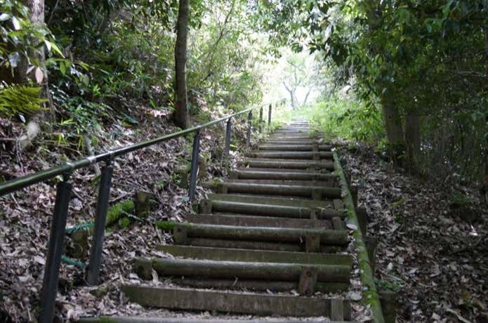 山頂までの登山道は、木段や石畳などでよく整備されていて、初めての方でも気軽にハイキングに挑戦できるコースです。途中、大阪城の築城の際に石を切り出した「石切場跡」を通ります。独特な形の岩が点在し、周りの景色とは少し異なる、「人の手による自然」ともいうべき不思議な空間を楽しむことが出来ます。