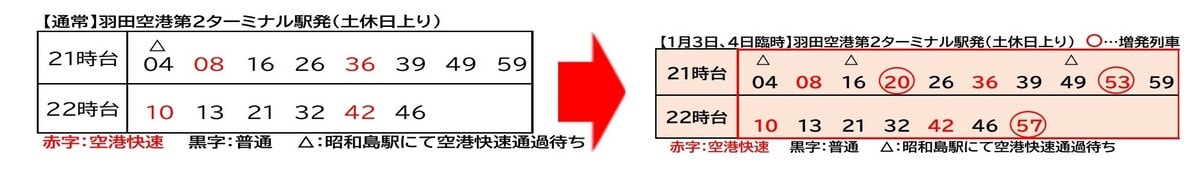 土休日増発日:1月3日(土)、4日(日)※21~22時台に上り空港快速を増発