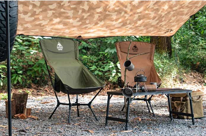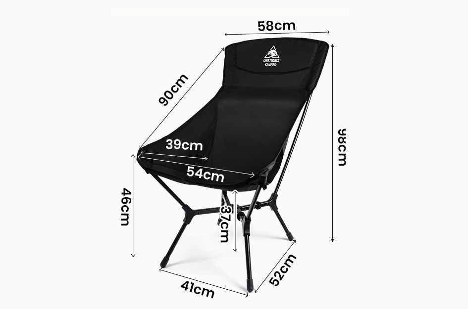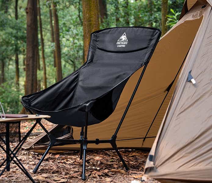座面高37cmのちょうどいい高さ、150kgの耐荷重、そして頭までしっかり支えるハイバック設計。キャンプはもちろん、庭先やベランダなど、ちょっと座りたい日常シーンにも活躍します。