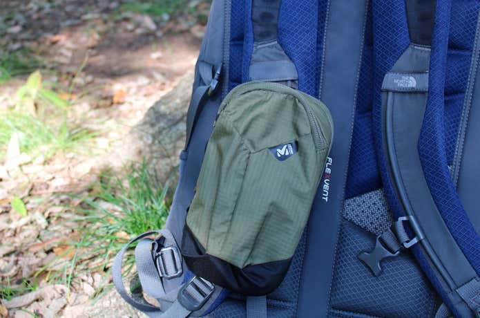 ザックのショルダーハーネス(肩紐)に取り付けられるポーチのことで、出し入れの頻度が高いものを収納するのに便利なアイテムです。