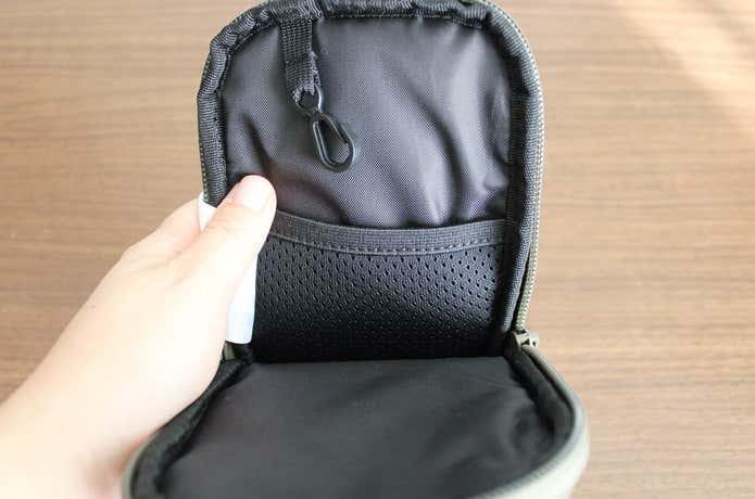 スマートフォンやコンデジといったメインの収納アイテムに、プラスで小物も収納したい場合はポケット付きのポーチがおすすめ。分けて収納すれば、ごちゃごちゃせずスムーズに取り出せます。