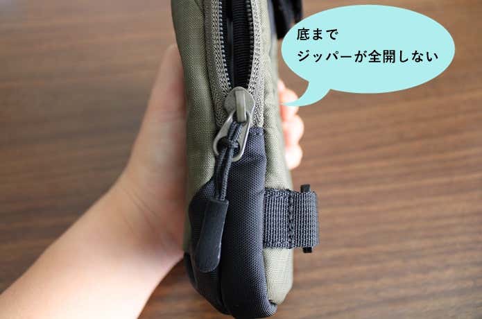 開口部のファスナーはポーチの底まで全開せずに、途中までしか開かないタイプがおすすめです。