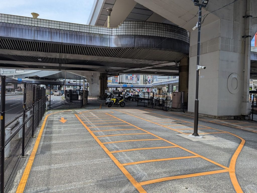 JR上野駅の東側、首都高速1号上野線および歩道橋の下に位置する「上野駅前自動二輪車駐車場」は、JR上野駅まで徒歩約3分という地下通路が直結する利便性の高い駐車場です。雨に濡れることなく駐車場から上野駅まで向かえるのはとても有り難いです。駐車スペースは大小2種類あり、合計123台が停められる広さを誇ります(50cc以下の原付は駐車できません)。地下に降りてすぐ右側にトイレもあり、何かと便利な要素が多い駐車場と言えます。