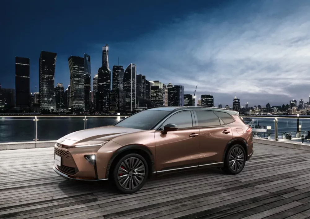 「ハンマーヘッドフェイス」を採用したフロントマスクは、横一文字に広がるシグネチャーランプと大きく開いた開口部によって、先進的かつ存在感のある印象を与えています。