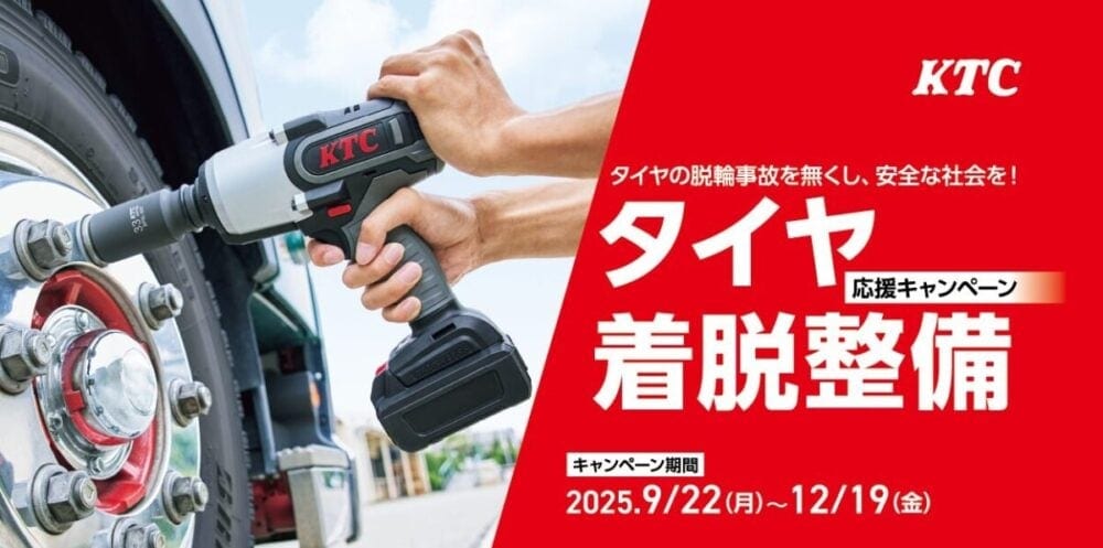 京都機械工具株式会社(KTC)は、2025年12月19日まで「タイヤ着脱整備応援キャンペーン」を開催している。