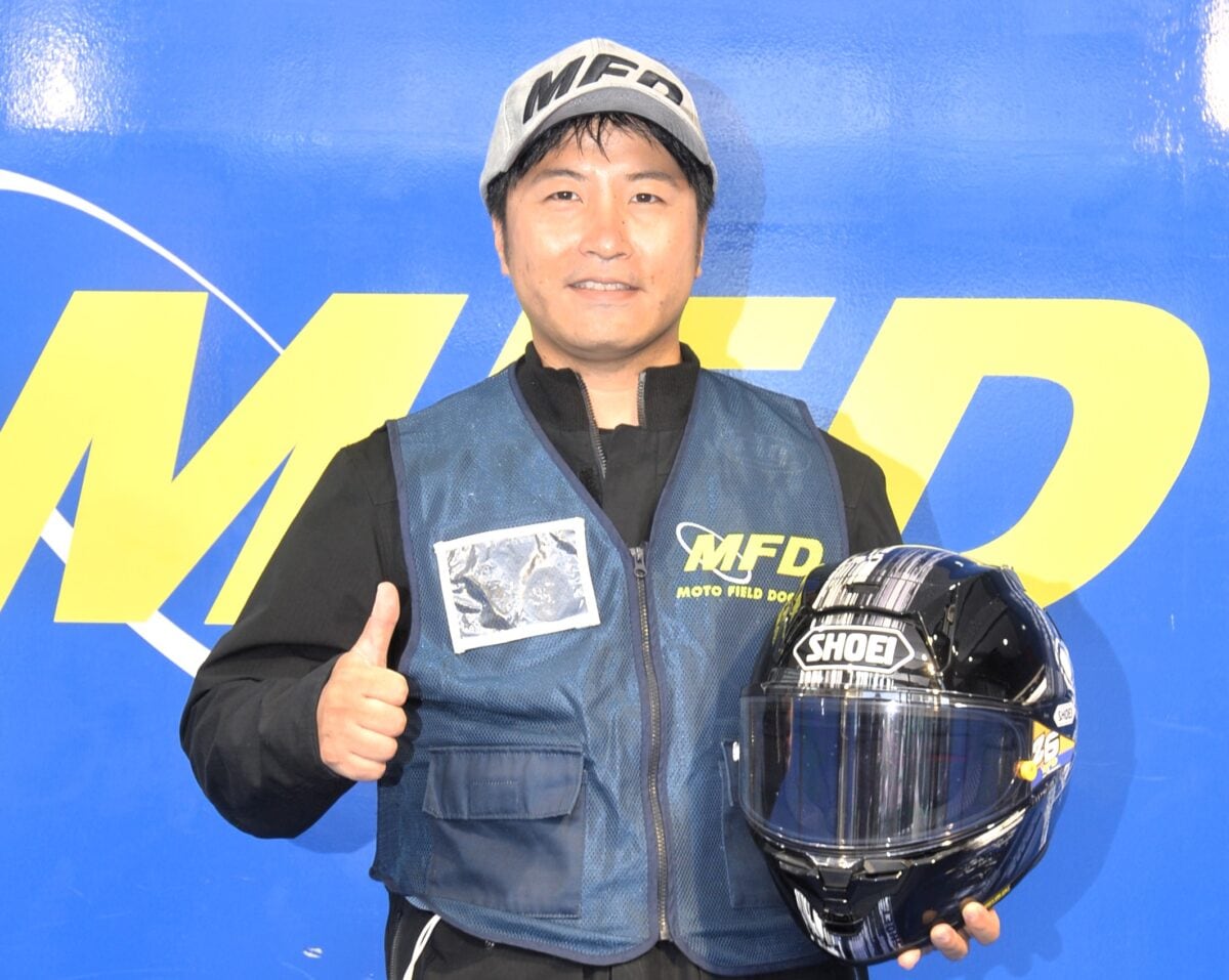 1993年より全日本ロードレース選手権GP250クラスに参戦を開始し、スーパーバイク世界選手権やスパースポーツ世界選手権、鈴鹿8時間耐久ロードレースなどで活躍した・藤原克昭氏も試乗会の先導役として参加する機会がある。2014年限りでレース活動は引退したが、現在はMFDモトフィールドドッカーズの執行役員となり、同グループの走行会では先導インストラクターを務めることも多い。当日は気軽にライディングテクニックのアドバイスをしたり、休憩時間には参加者にレースの裏話を披露するなど、試乗会の雰囲気を盛り上げてくれる。