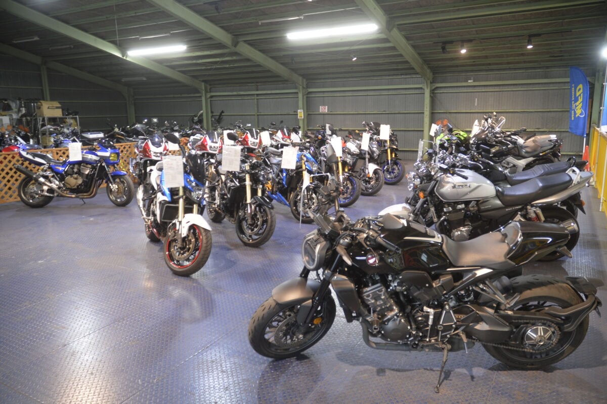 ここでは、モトフィールドドッカーズグループの中でも最大規模の店舗と在庫車数を誇る埼玉戸田店をご紹介しよう。広い店内に国内外の、新車、中古車が並ぶ光景は、モーターサイクルショーの会場ようで、見学しているだけでも楽しくなるはずだ。
