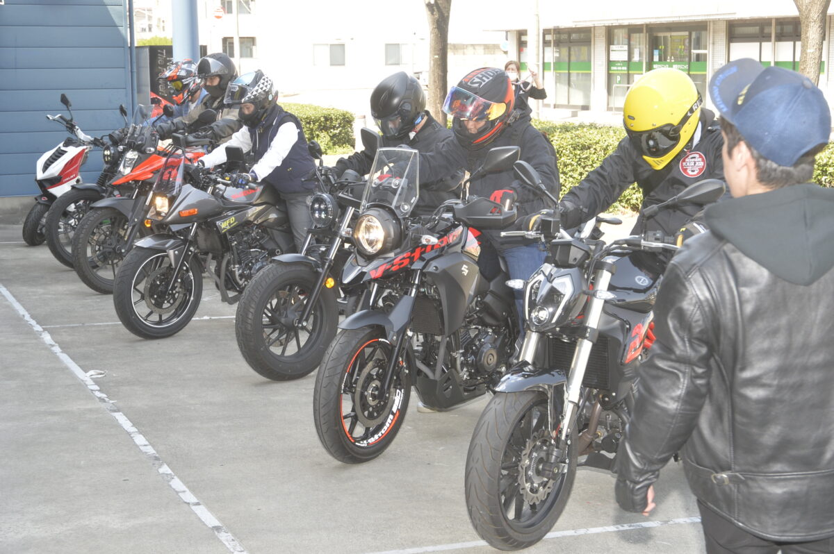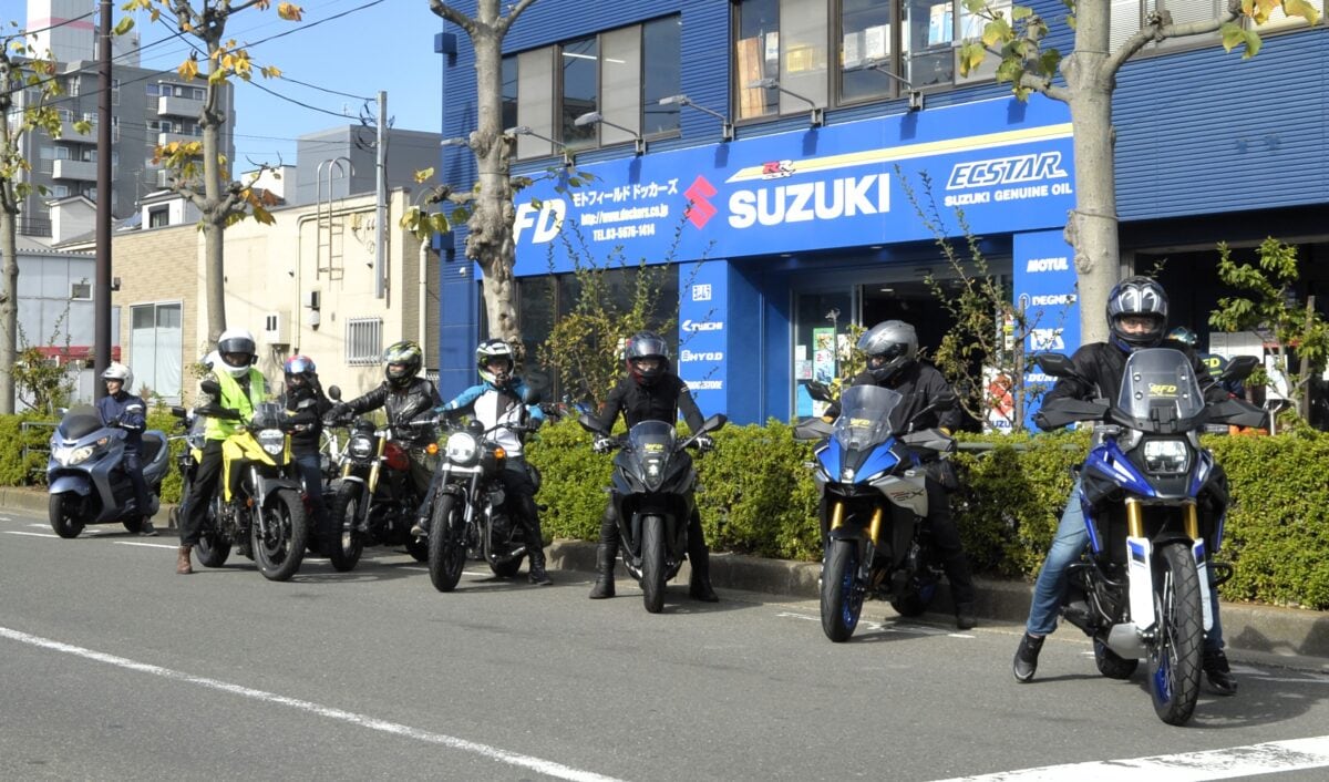 また、2007年より全日本ロードレース選手権GP250クラスに参戦を開始し、現在も全日本JSB1000クラスに参戦中の全日本トップレーサー・渡辺一樹選手も試乗会の先導役として参加することがある。Moto GPへの参戦経験もあり、気さくな性格からファンも多い人気選手だ。長くヨシムラから全日本選手権や鈴鹿8耐に参戦していたこともあり、スズキのトップディーラーであるMFDモトフィールドドッカーズとは、現在も深い絆で結ばれている。単なる試乗会ではなくトップレーサーと一緒に走った記念にもなるはずだ。