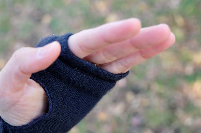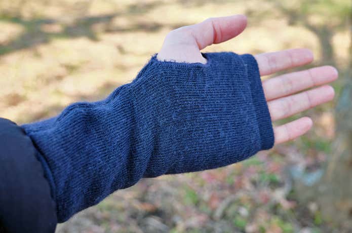 手首や手の甲だけでも十分保温できるとは言え、やはり気温が低くなると指先の冷たさが気になってきます(筆者の個人的な体感では、0℃前後になるとさすがに厳しいと感じます)。