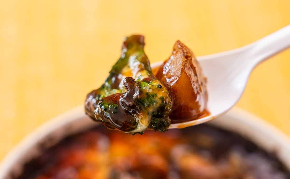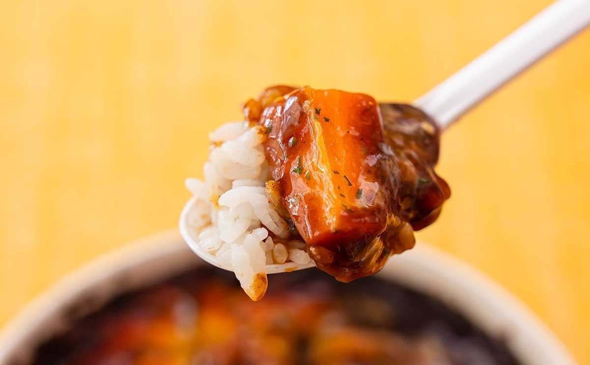 肉の旨みがギュッと詰まったような濃厚でリッチな味わいのビーフシチューソースは、コク深くて旨みと甘みを感じます。ホクホクとしたじゃがいもや柔らかなにんじんなど、野菜との相性もばっちり。ソースの下に敷き詰められている白いご飯ともマッチして、とてもおいしいです。